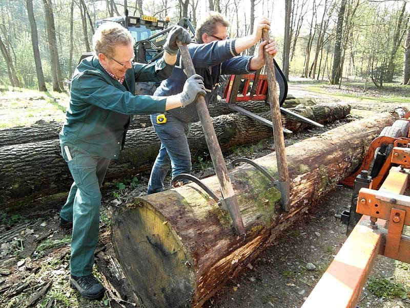 Op woensdag 25 april is een begin gemaakt met het houtzagen voor de Buurserpot. De in 2011 geselecteerde eiken werden op een aanvankelijke zonnige dag gezaagd. Het betrof bomen met een onderstam van meer dan 8 meter! Er is zowel kwartiers gezaagd als louter planken. Op de foto’s (zie beneden) is duidelijk hoe flexibel de 8m+ planken zijn (50 cm breed) en het is dan ook voorstelbaar hoe deze straks in Enter in de juiste vorm worden ‘gevouwen’ tot boot.